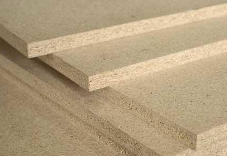 원목을 가공하는 과정에서 나오는 잔재를 잘게 부수어 접착제를 섞어 열과 압력으로 단단하게 붙인것.