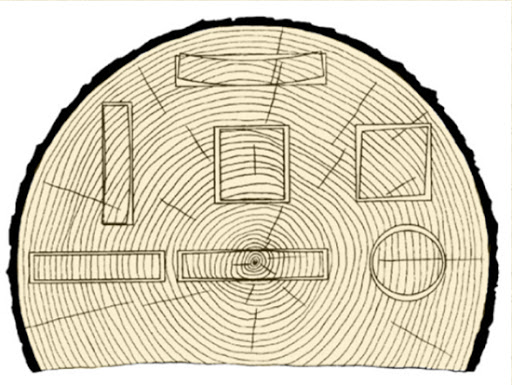 나이테가 펼쳐지는 방향으로 나무가 수축합니다.