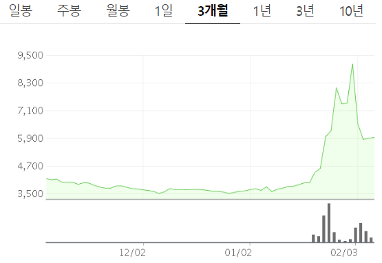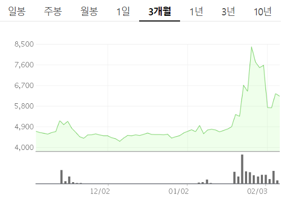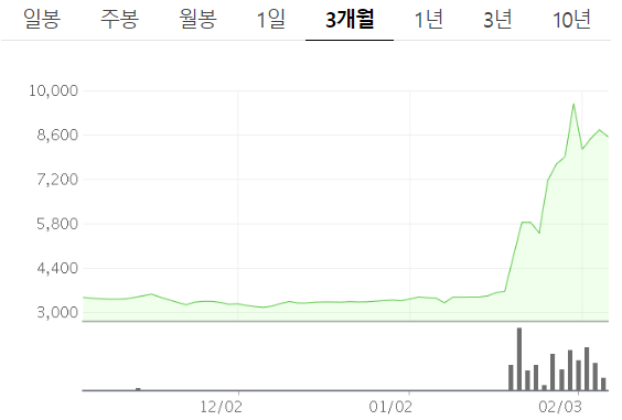 - 주가가 피크를 찍은 2월 3일: 사실상 큰 의미가 있는 날은 아니지만 온 국민이 마스크 테마주의 존재를 알 수 있는 시기