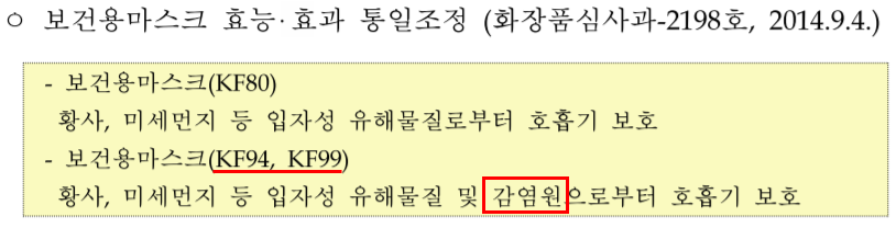 - 식약처 인증의 보건용마스크 인증 기준인 KF등급