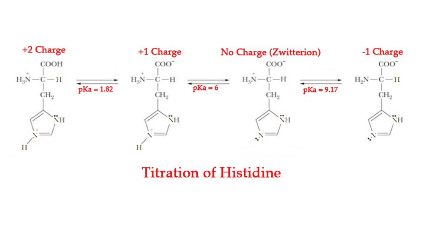 Histidine의 pKa는 체내 pH와 유사해서 base, acid로 모두 사용